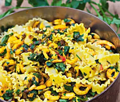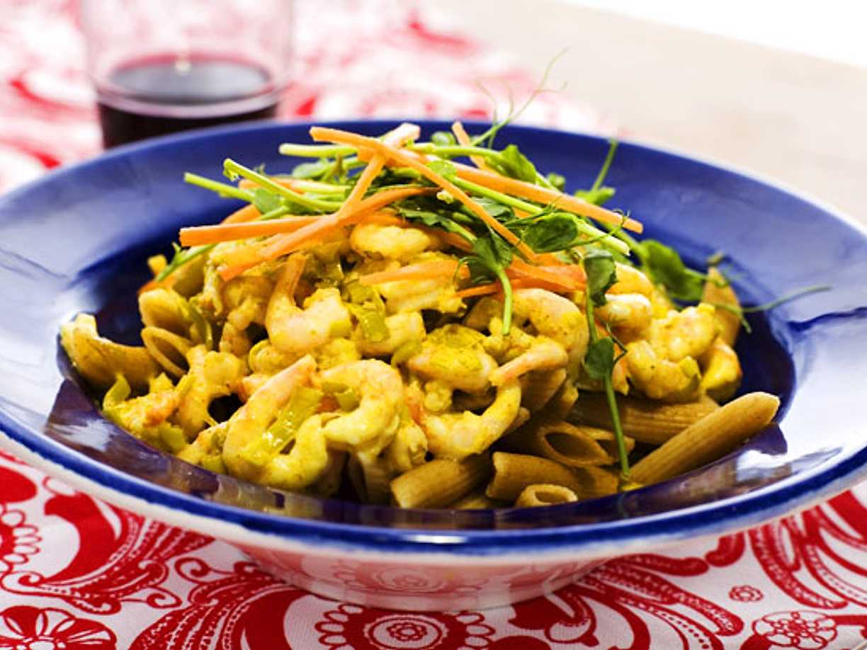 Pasta med räkor och currysås