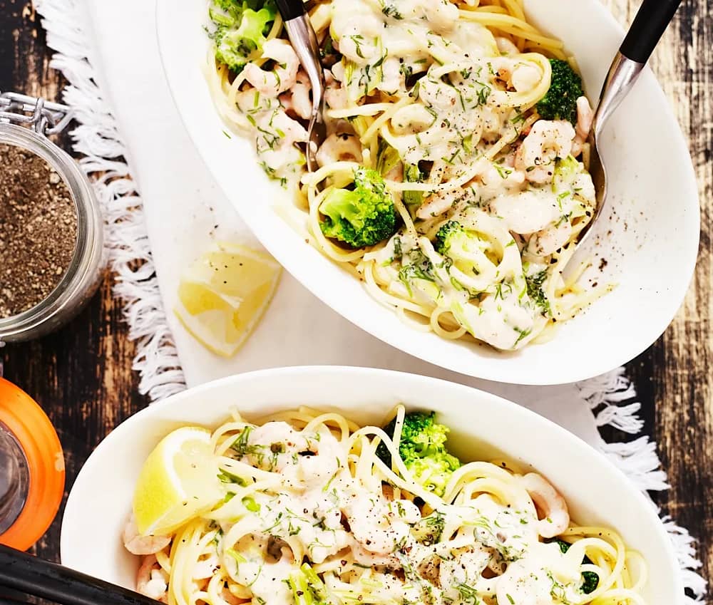 Räkpasta med dill och broccoli