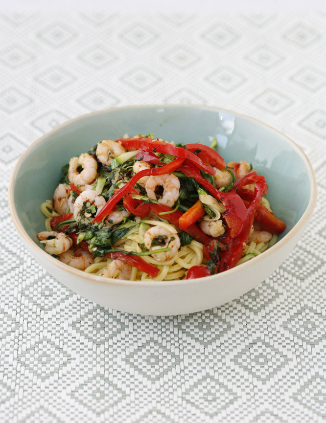 Smal räkpasta med chili