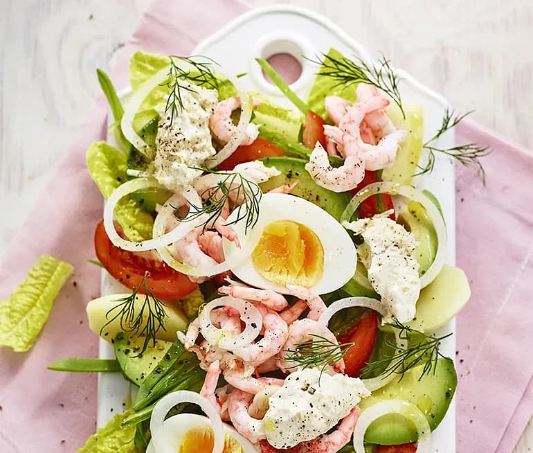 Räksallad med krämig dilldressing