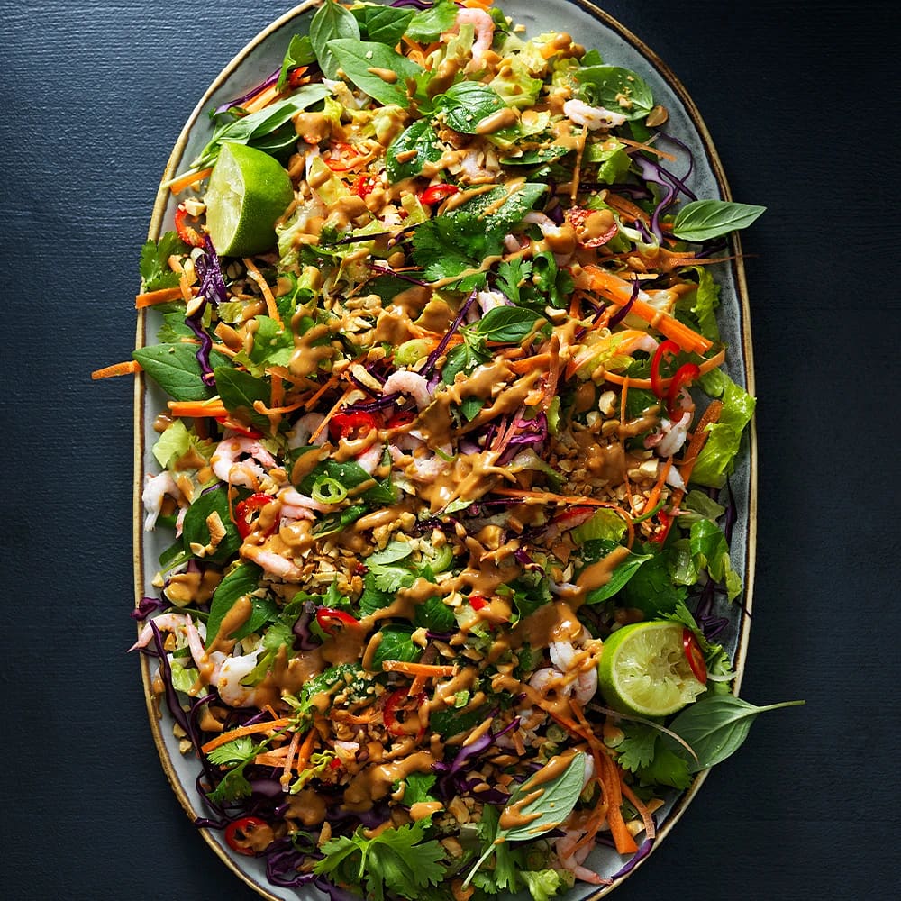 Asiatisk räksallad med jordnötsdressing