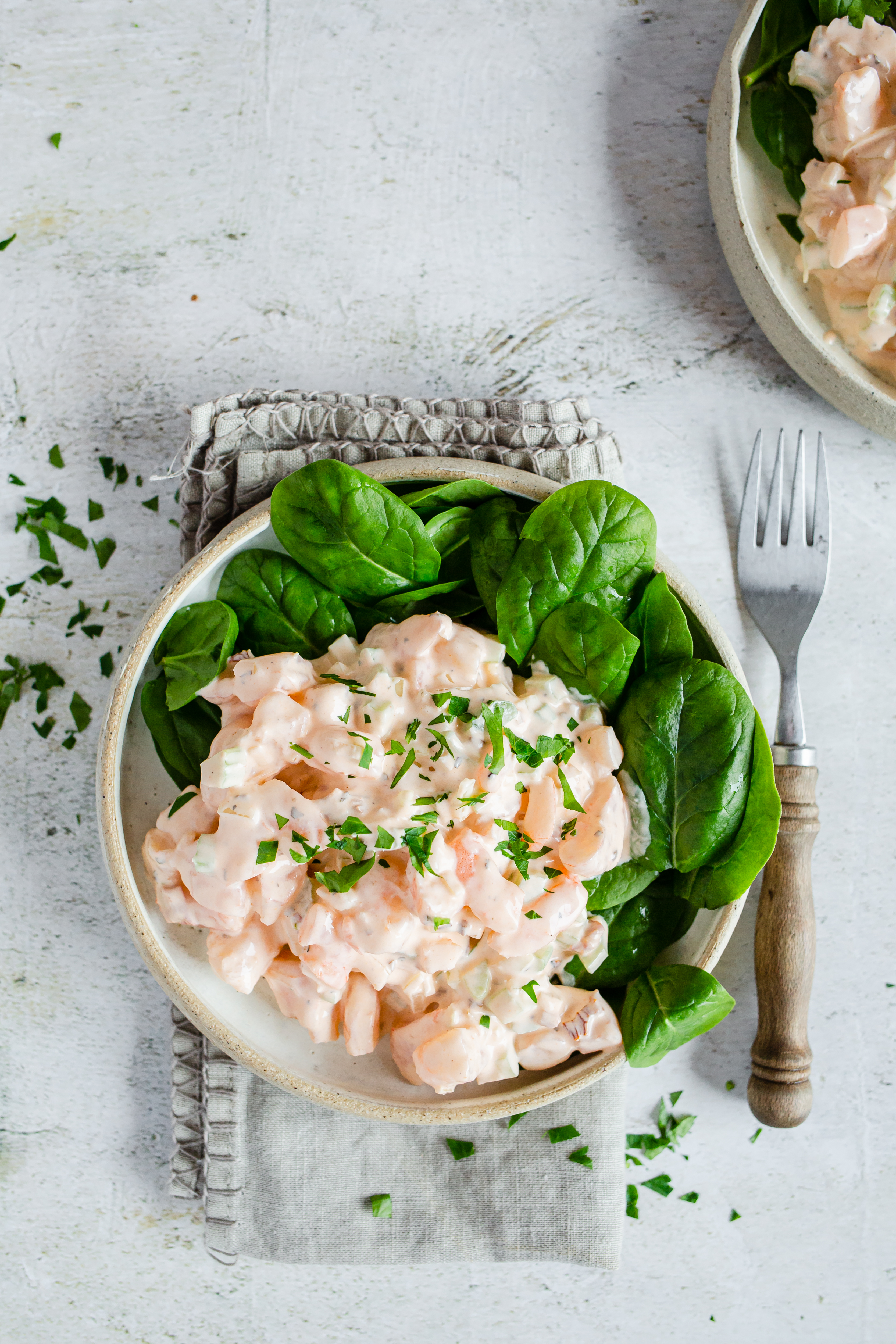 Kalorisnål räksallad med majonnäsdressing