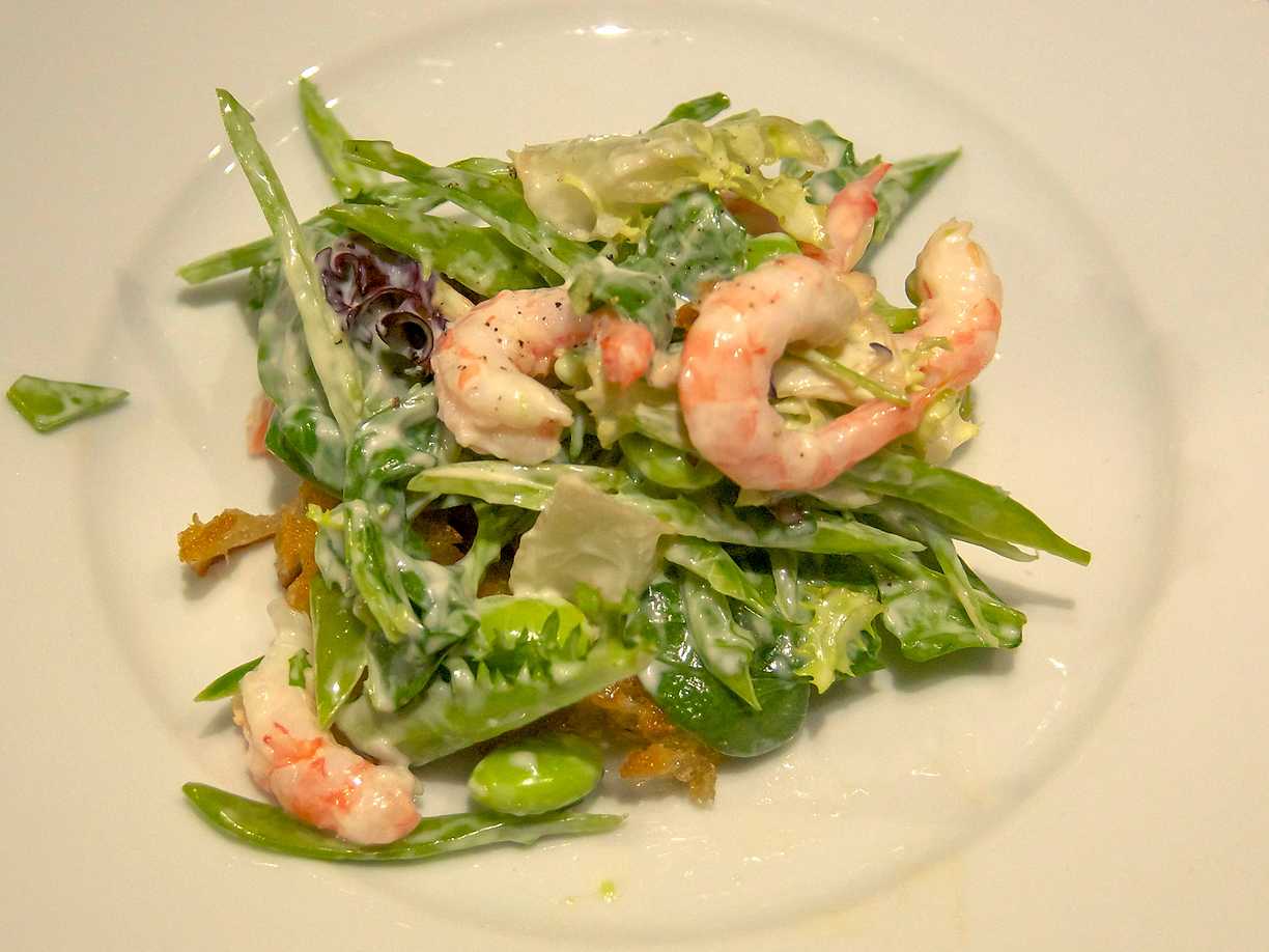 Räksallad i nobissås på vitlökslevain