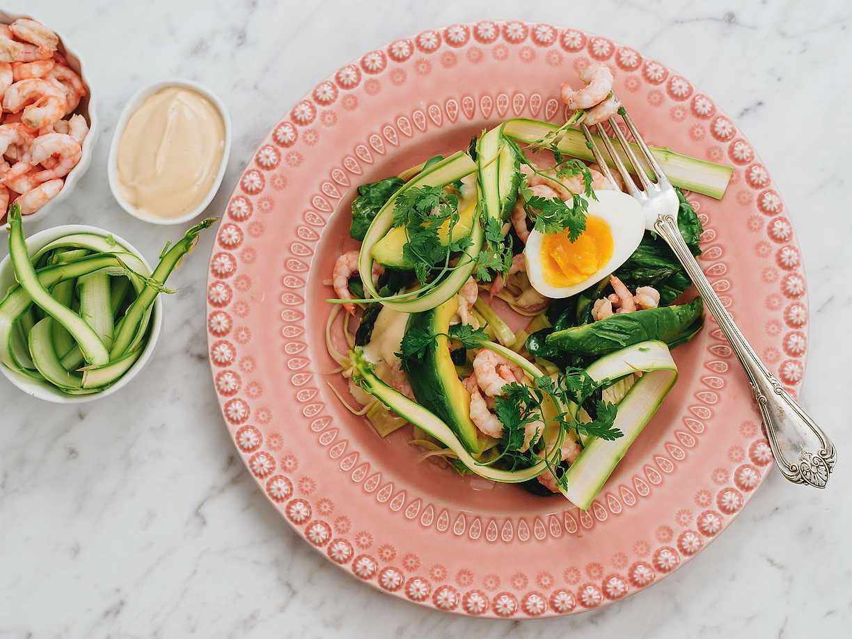 Räksallad med grön sparris och citroninlagd avokado