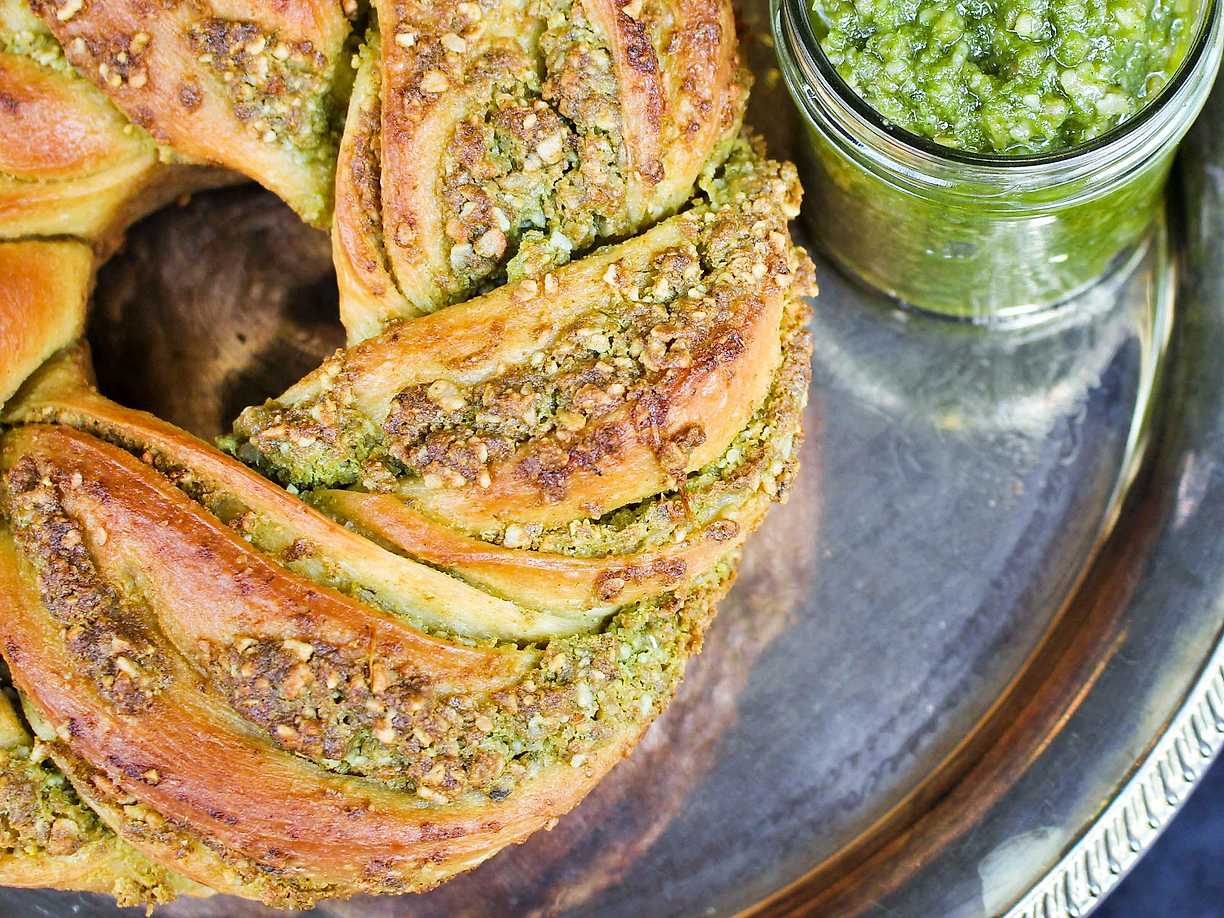 Pasta med lammfärs och ramslöks- och hasselnötspesto