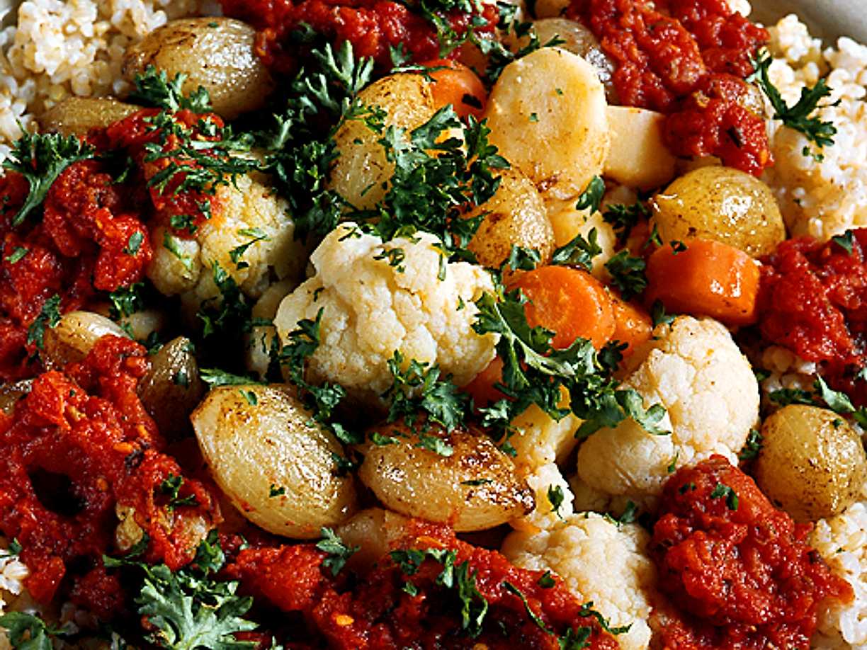 Svart råris med saffransgrönsaker