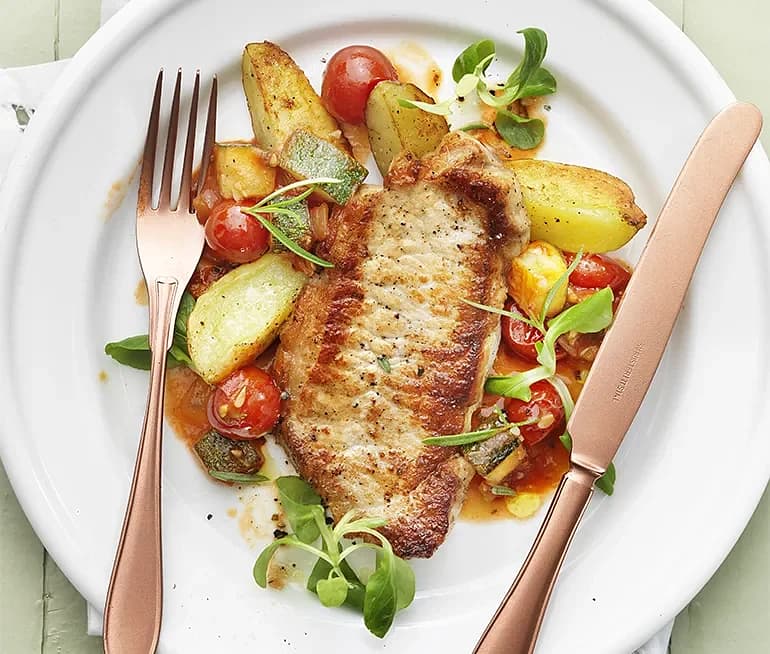 Fläskkotlett med ratatouille på svenska