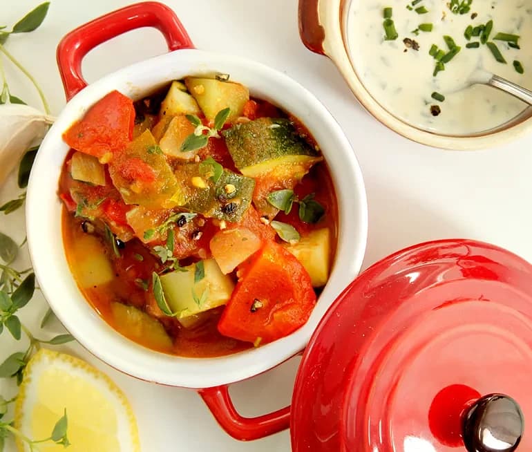 Ratatouille med vitlökscrème