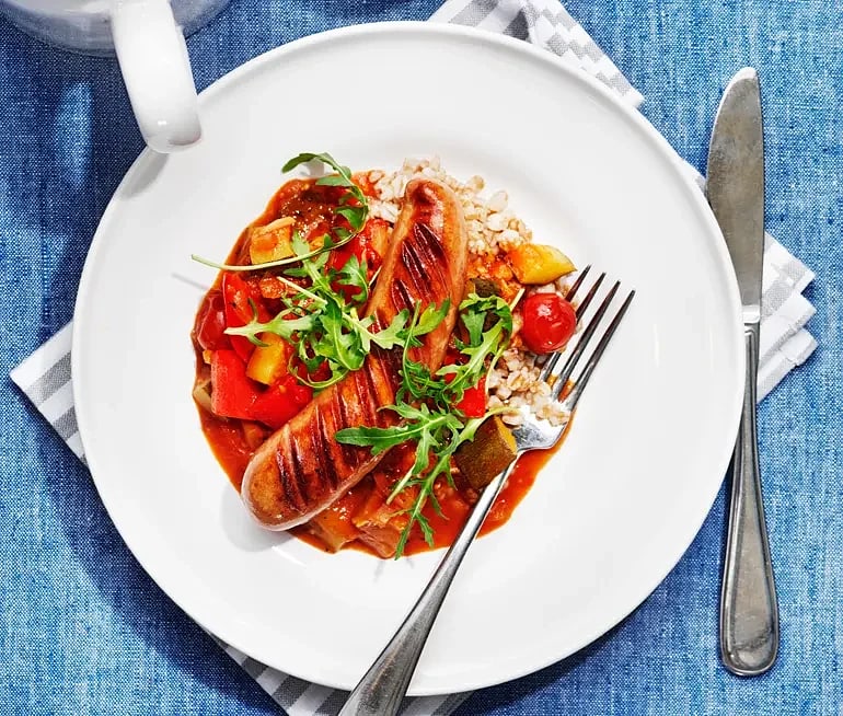 Snabb falukorv i ugn med ratatouille