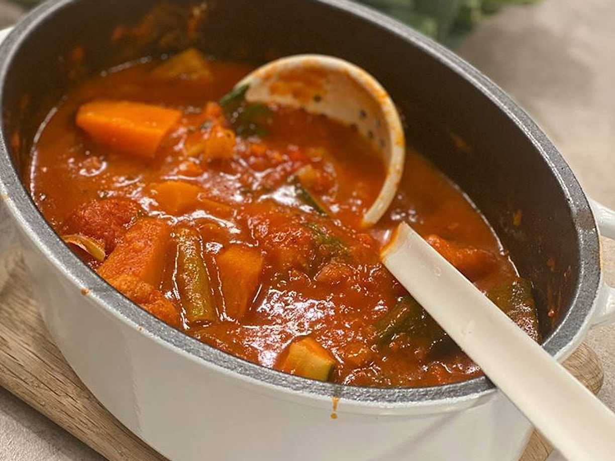 Ratatouille med chèvre och chorizo