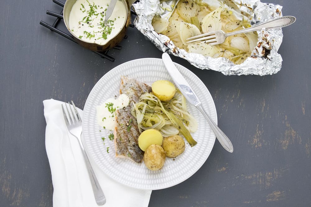 Visar placering 6–8 av de högst betygsatta recepten med regnbågslax.