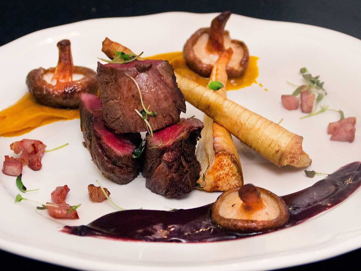 Smörbakad rotselleri med rostad mandel, tryffel, kål och rökt ren