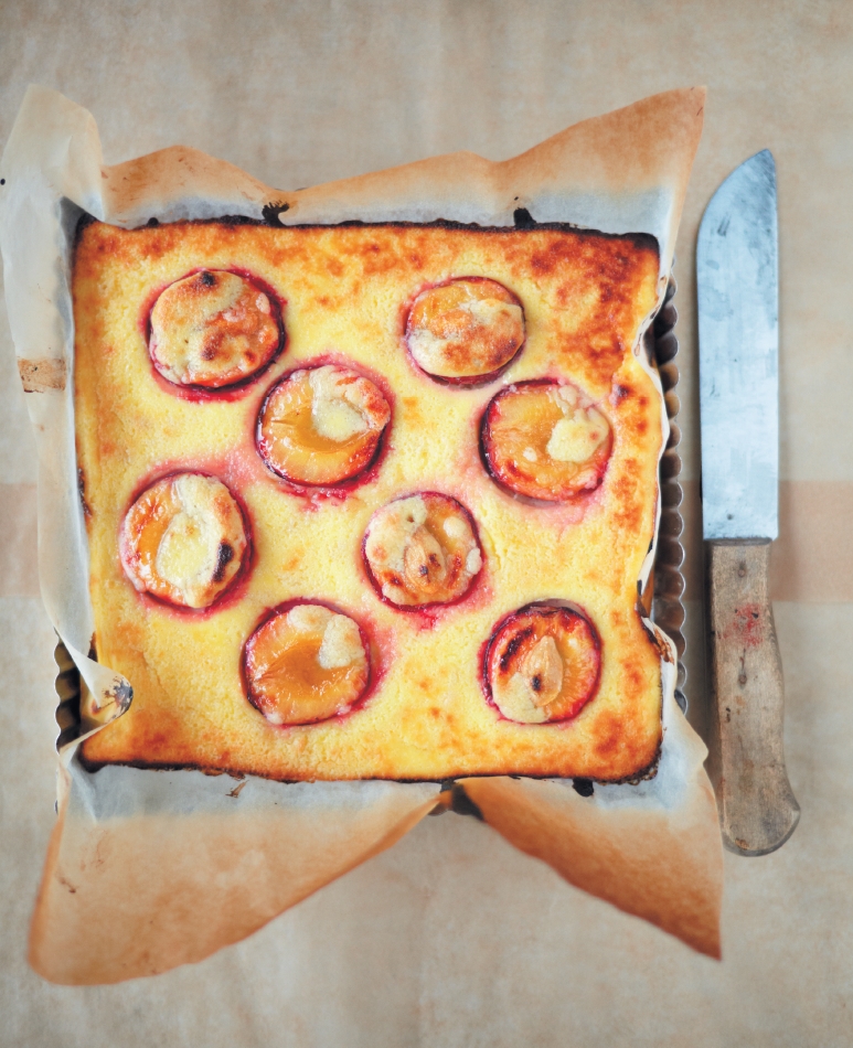 Mandelclafoputis med ricotta och plommon
