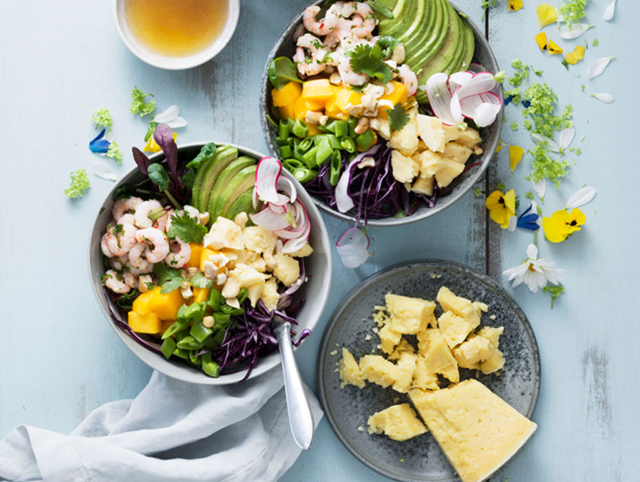 Bowl med misobakad lax, fänkålsslaw och svart ris