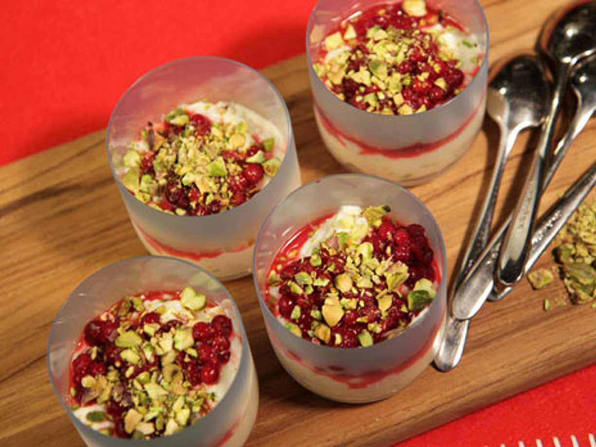 Hallonmousse med puffat ris och nötter