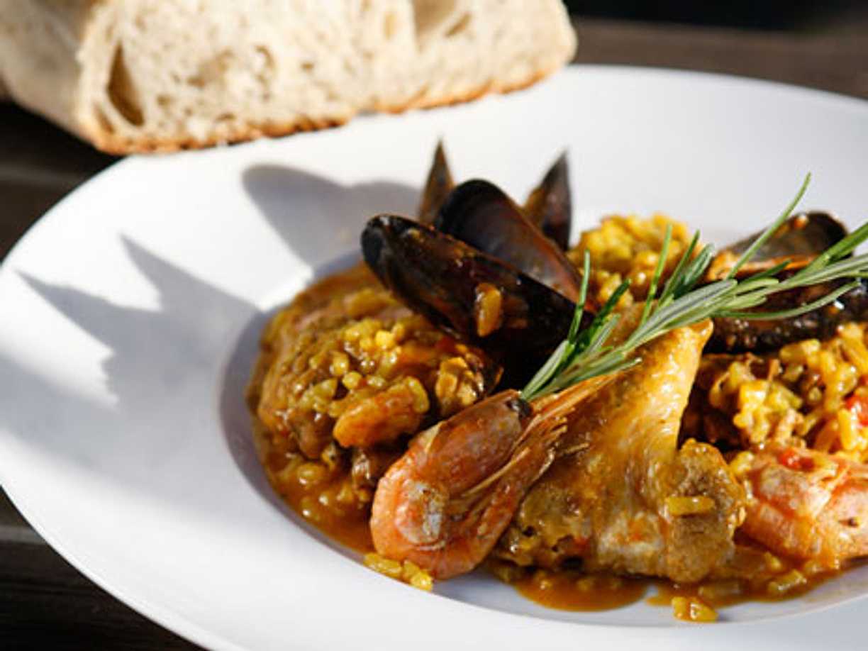 Skaldjurspaella i långpanna