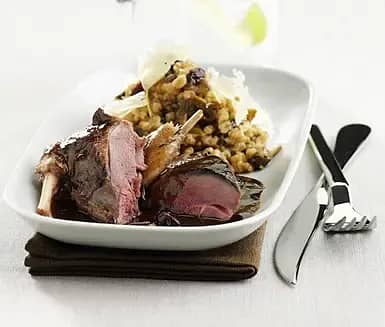 Hjortstek med risotto och portvinssky