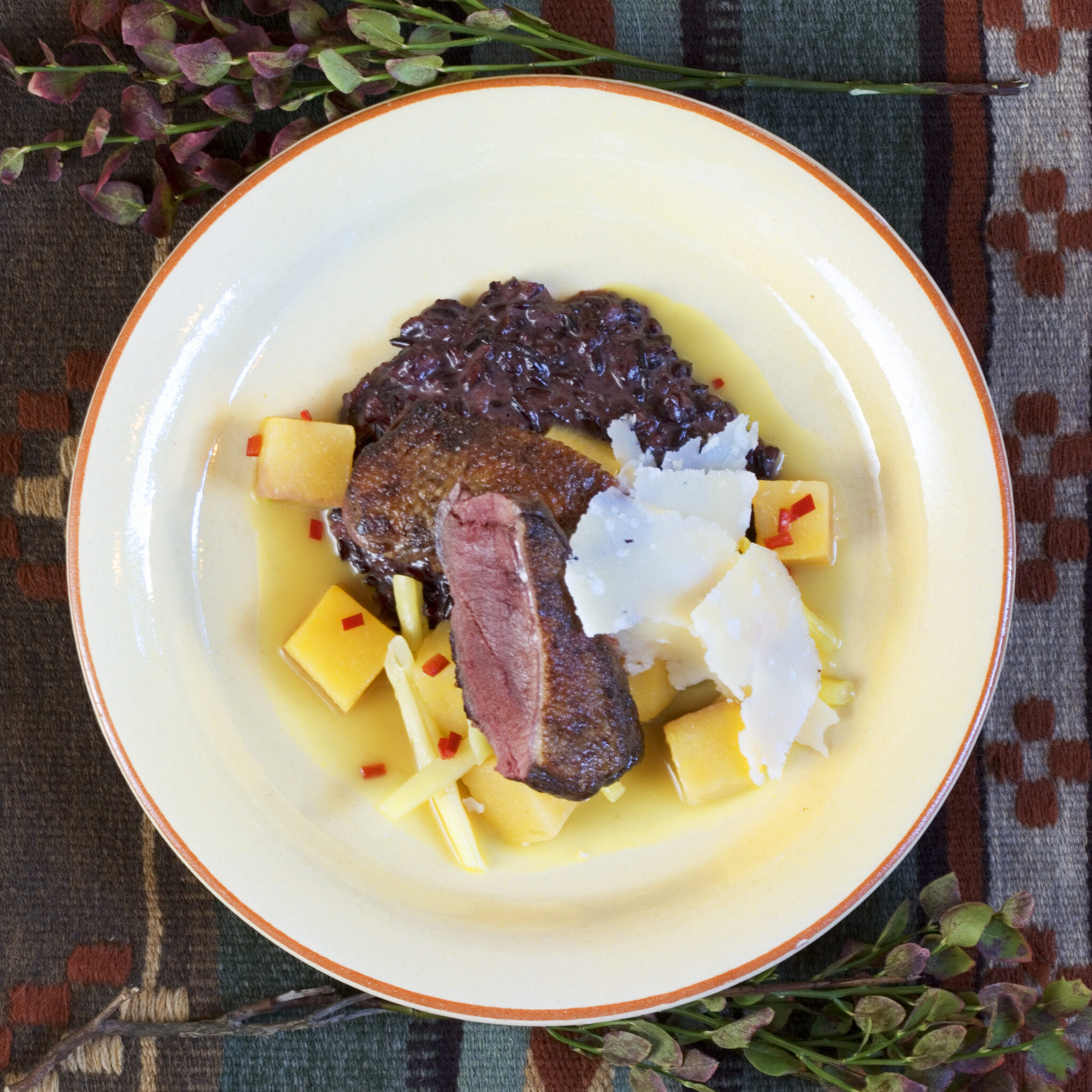 Stekt vildandsbröst med svart risotto
