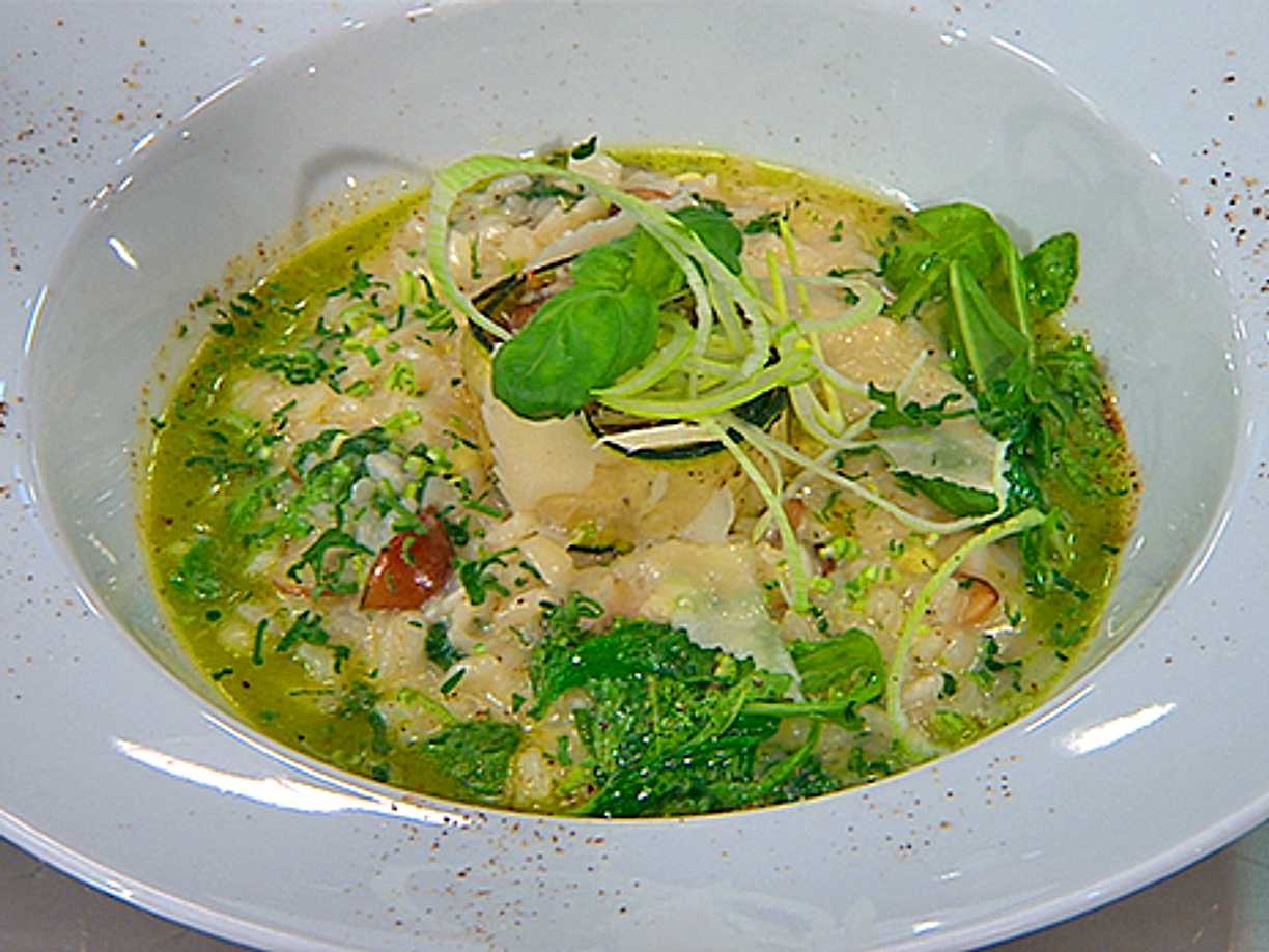 Risotto med pesto och pinjenötter