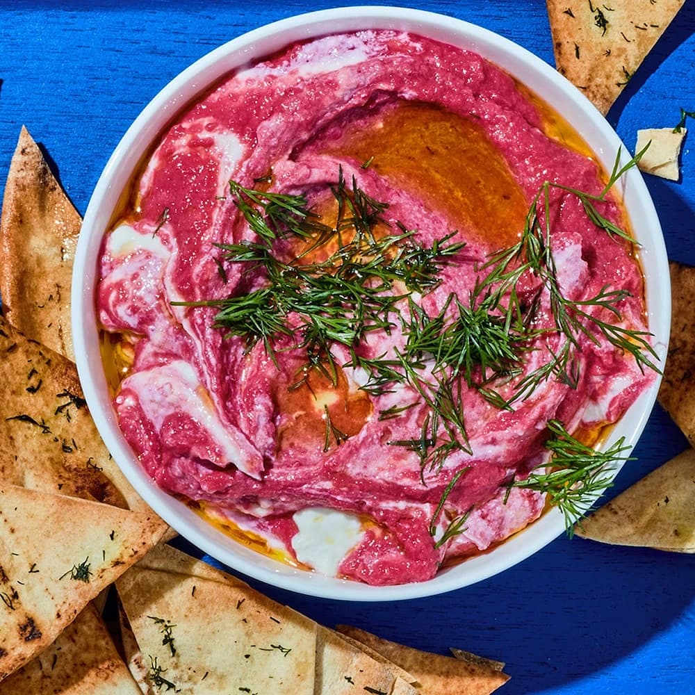 Rödbetshummus med smulad fetaost