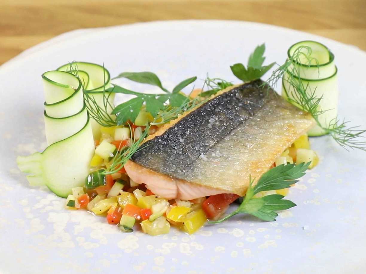 Halstrad röding med zucchini, fänkål och vitvinssås