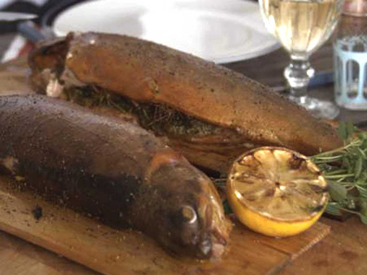 Ugnsbakad röding med senaps-creme fraiche och vårsallad