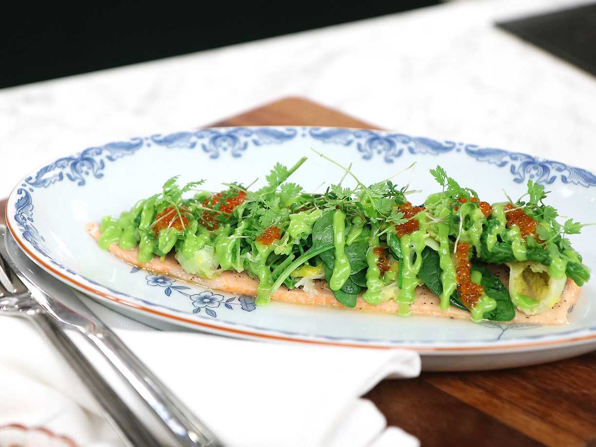 Lättgravad röding med blomkålskräm och rökt forellrom