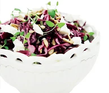 Rostad rödkål med saffransmajonnäs och pistagenötter