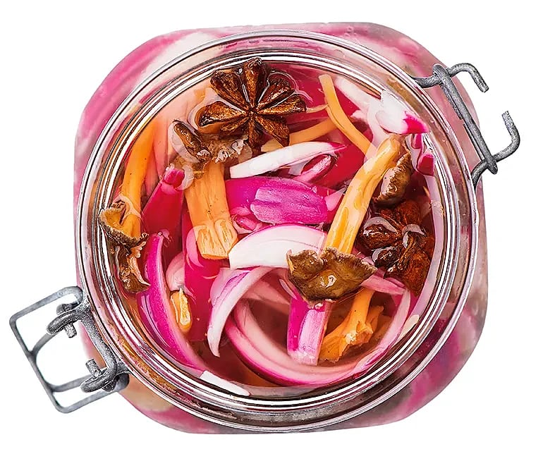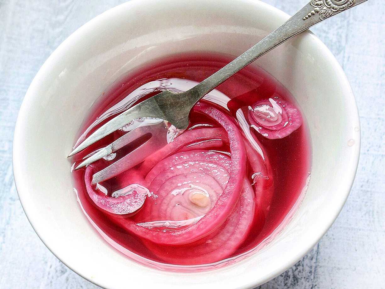 Julsallad på marinerad rödkål, picklad rödlök och grenadineäpple