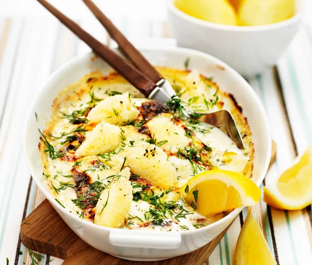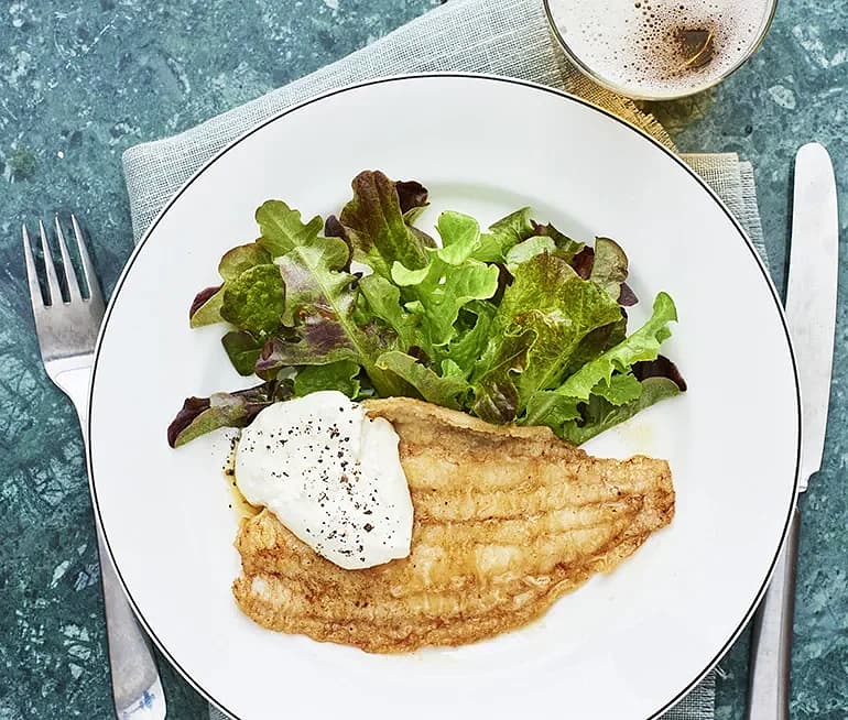 Örtbakad rödspätta med curryremoulad och potatissallad