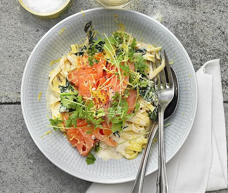 Tagliatelle med rökt lax
