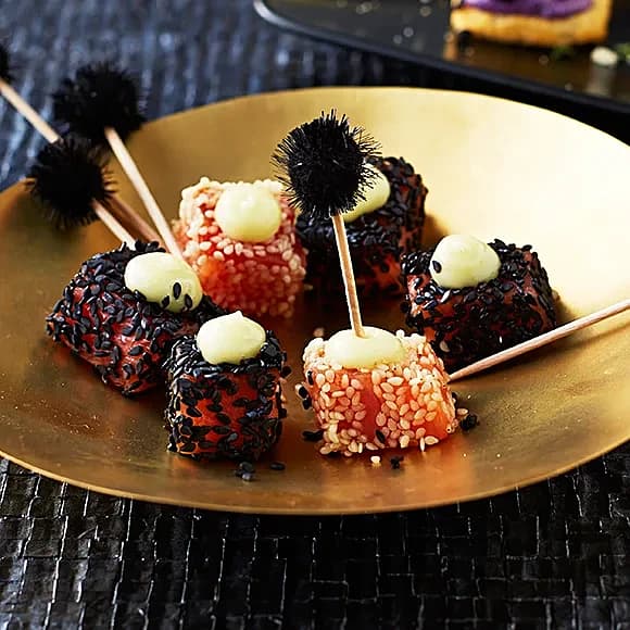 Rökt lax med wasabimajonnäs och sesamfrön
