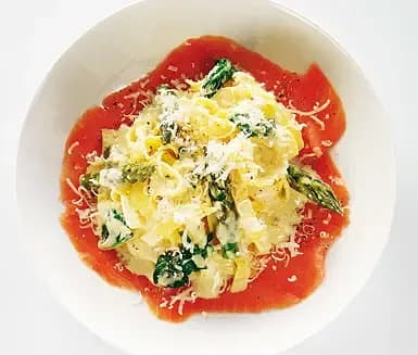 Spagetti med rökt lax, sparris, dill och citron
