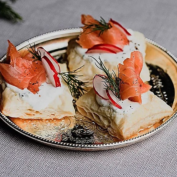 Kanapé med smördeg och rökt lax