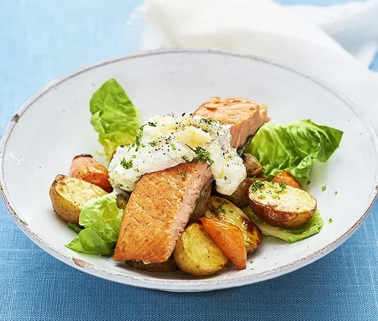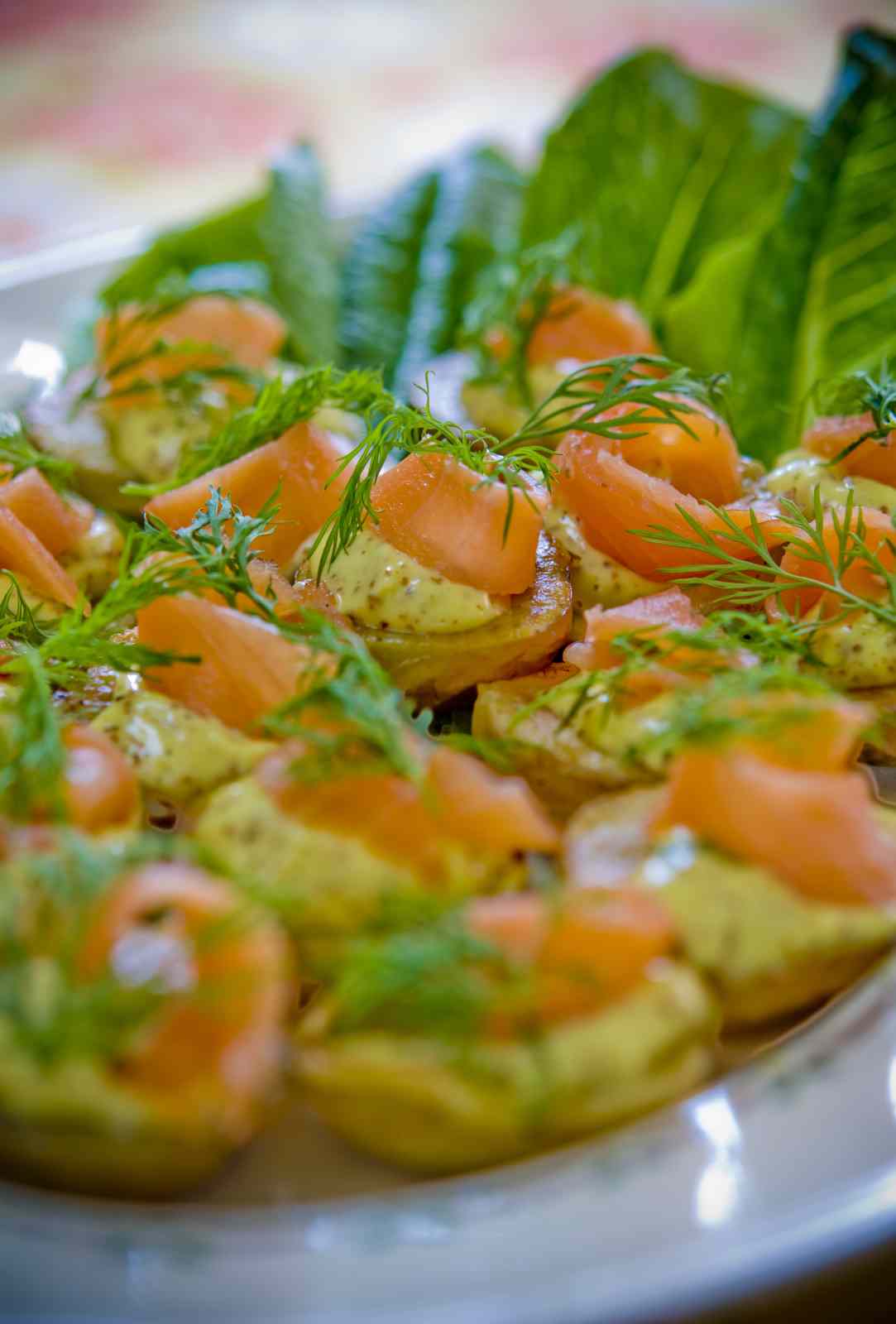 Rostade färskpotatisar med Dijonaisse och rökt lax