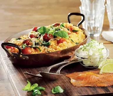 Risotto med rökt lax och limefärskost