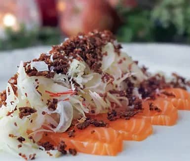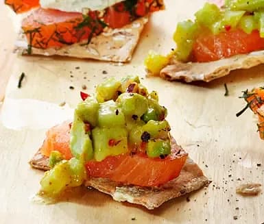 Rökt lax med äppelcrudité och kavringskrisp
