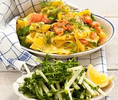 Pappardelle med rökt lax och citron