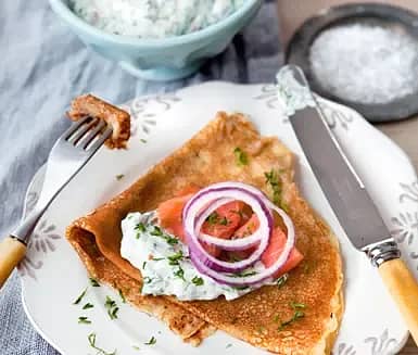 Örtpannkaka med rökt lax