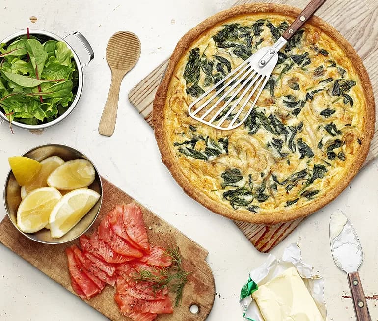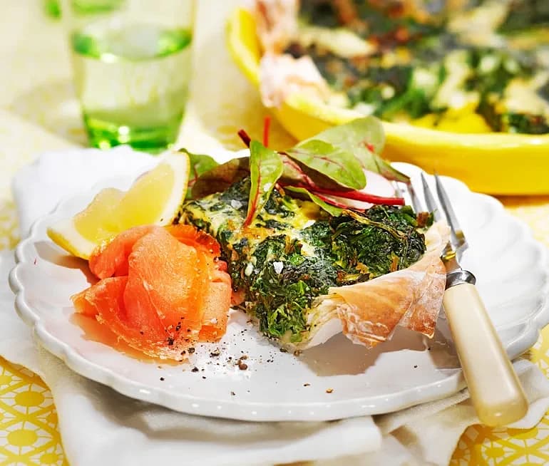 Spenat- och ostpaj med rökt lax