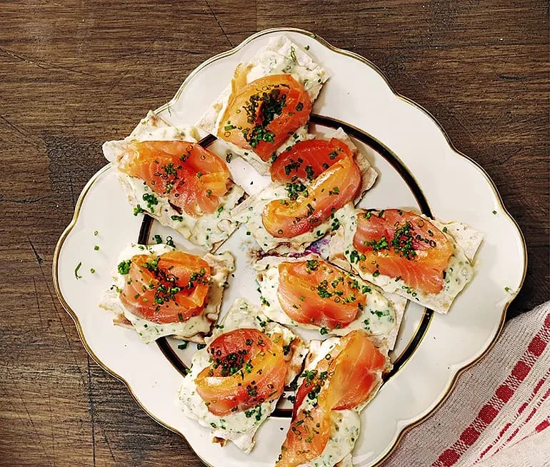 Messmörsnittar med rökt lax