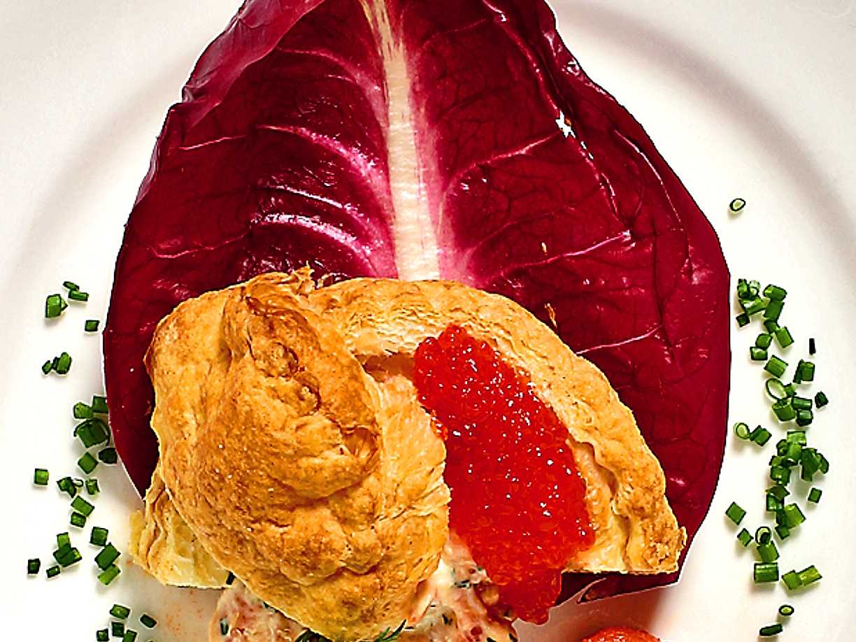Petit choux med rökt lax och färskost