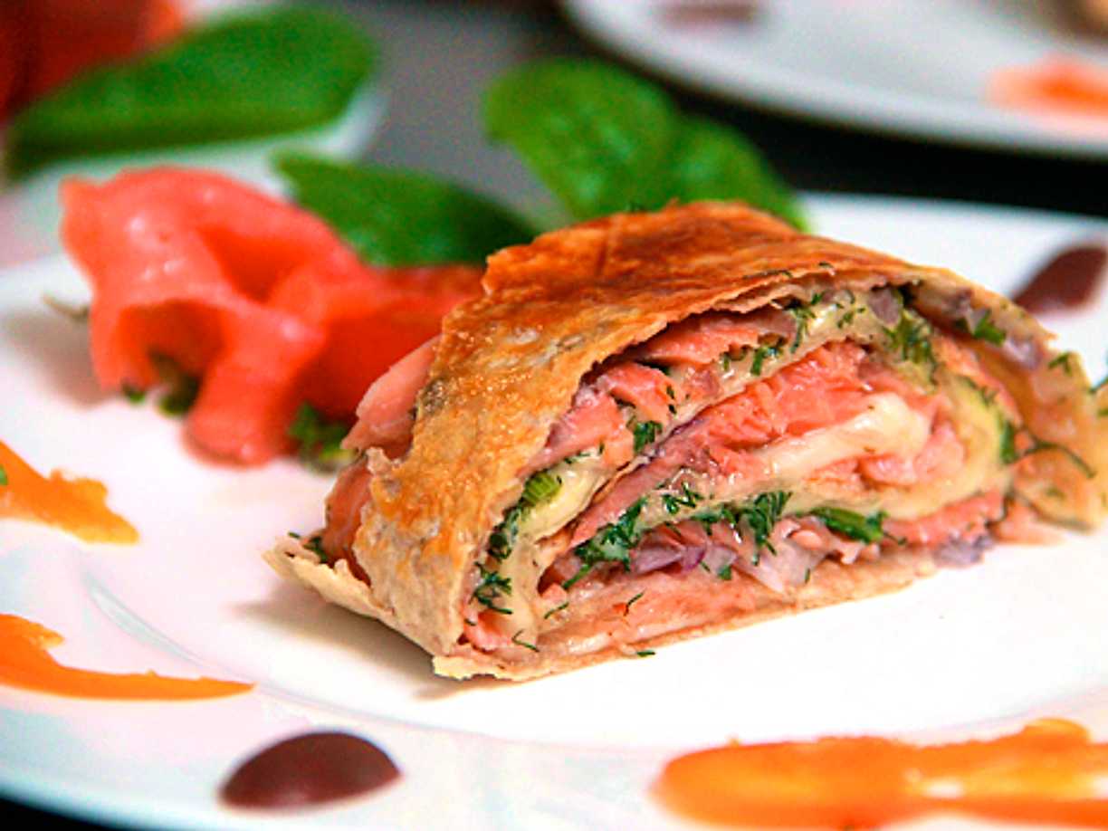 Varm tunnbrödsrulle med rökt lax
