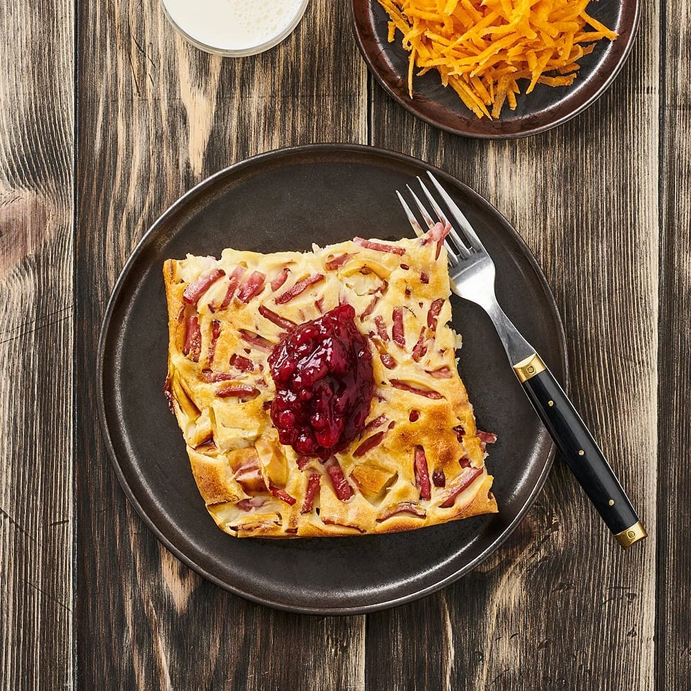 Västerbottensostpaj med rökt lax, rädisor och gurka