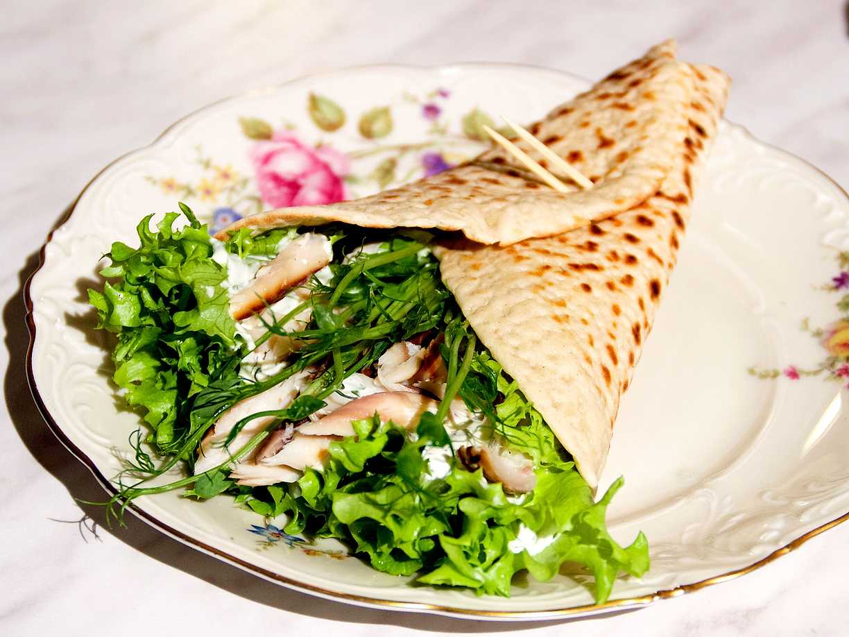 Salladswraps med rökt kalkon, tomater och majonnäs