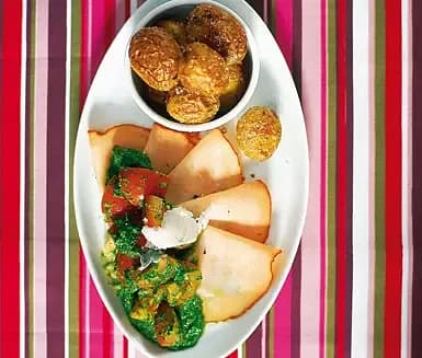 Rökt kalkonbröst med saltpotatis och mojo verde