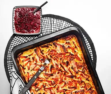 Rotfruktsgratäng med rökt skinka