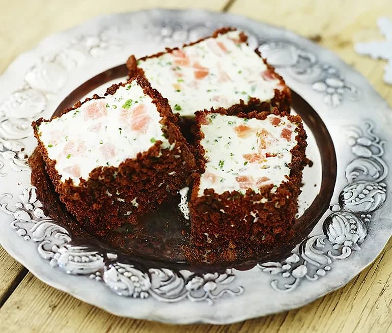 Danskt rågbröd med rökt lax och mascarponekräm