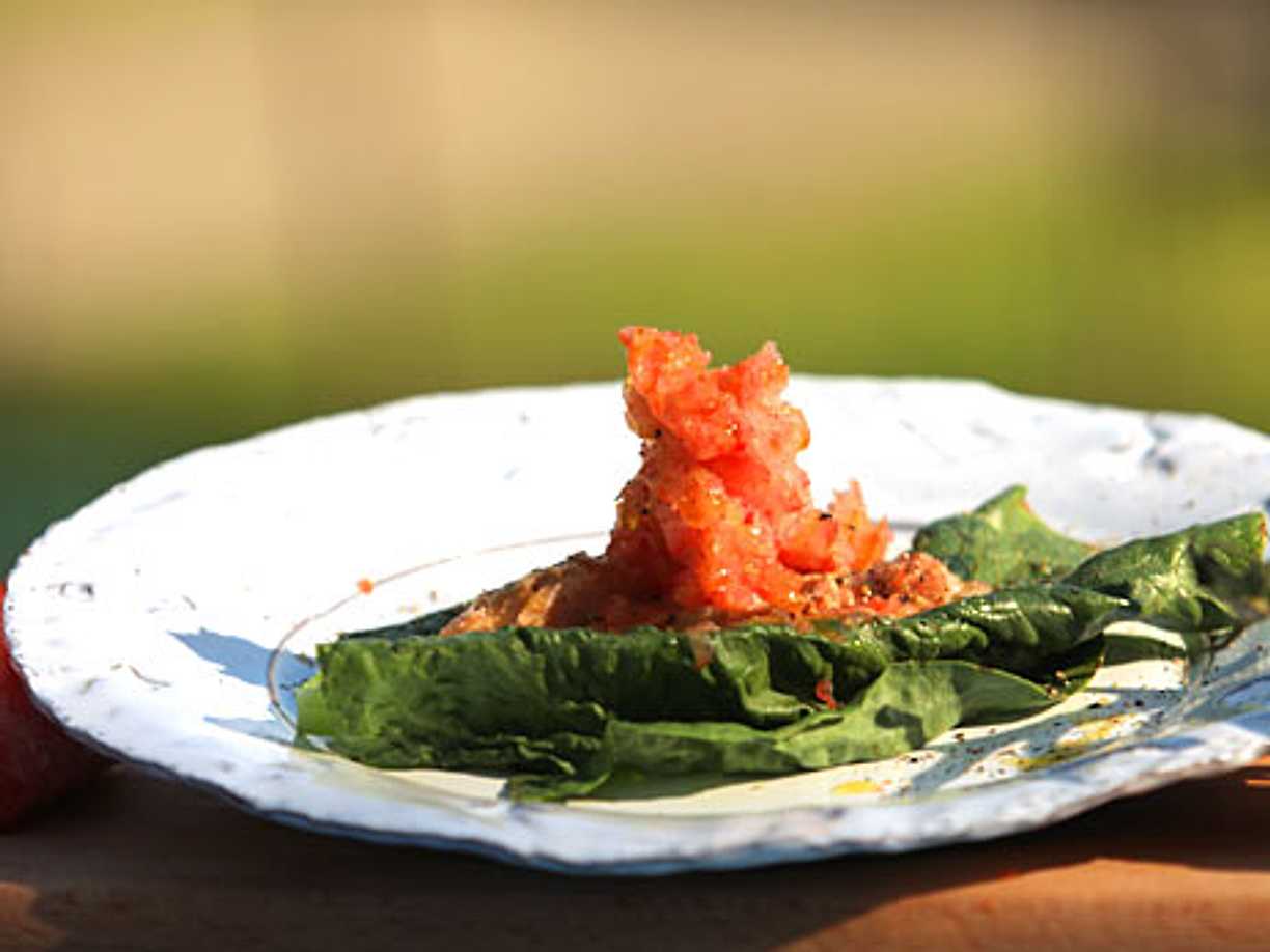 Gardensallad och färskkorv med rökt paprika