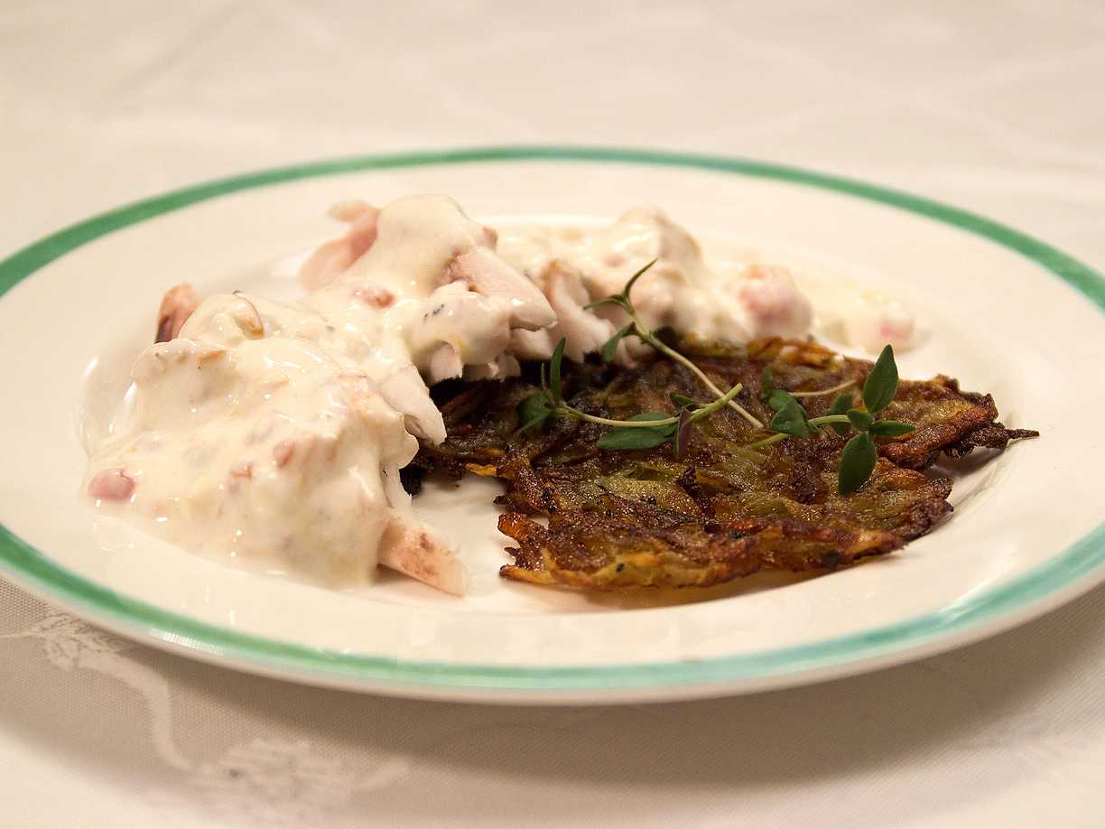 Potatispannkaka med rökt skinka